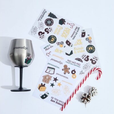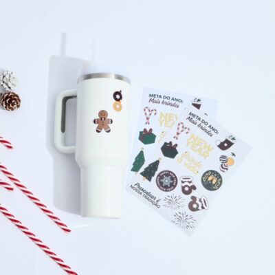 Caneca com Cartela de Adesivos Personalizado para Final de Ano