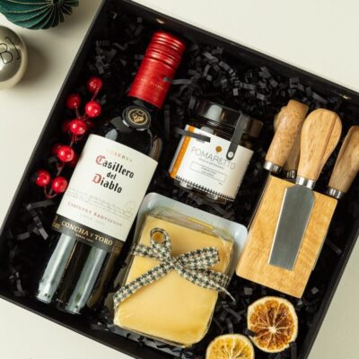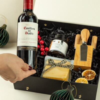 MBN011 – Caixa Gourmet com Vinho e Queijos – Kit de Natal