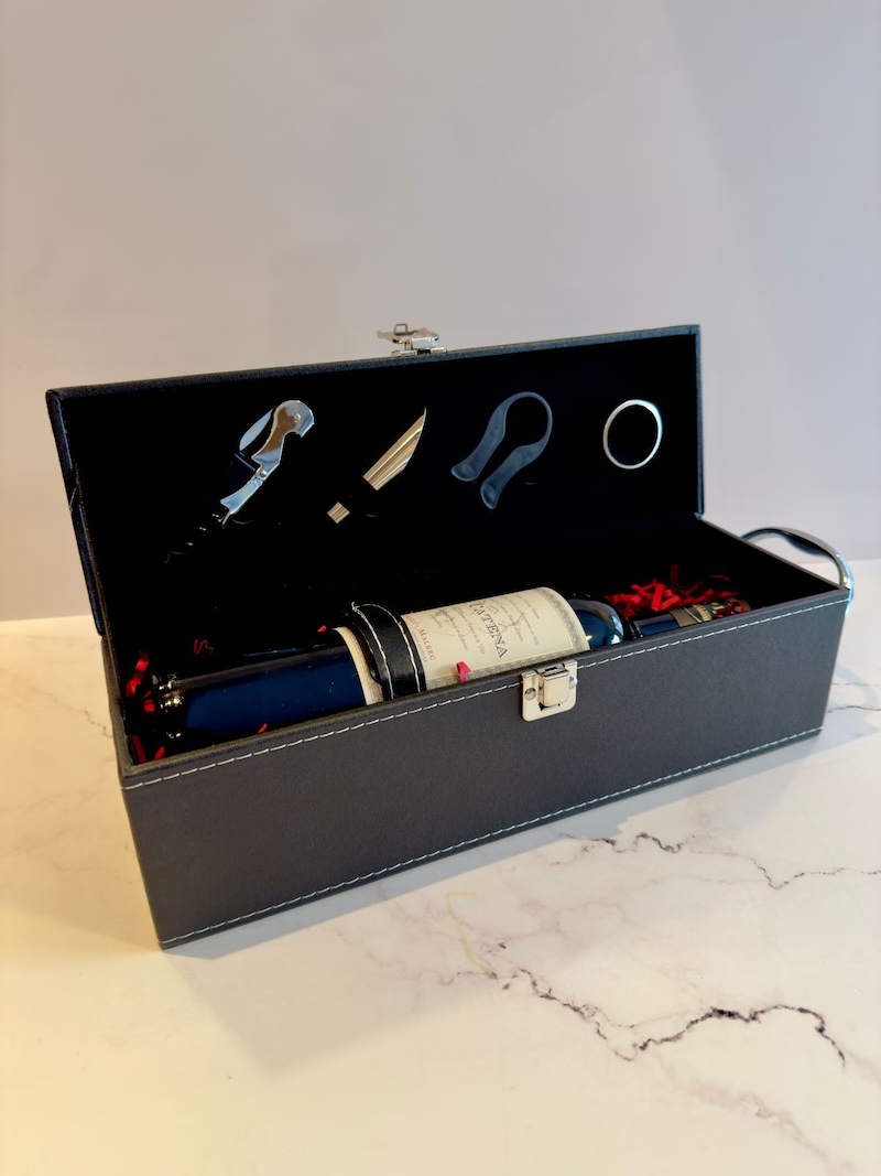 A Maleta de Vinho com Acessórios é uma opção refinada e atemporal, perfeita para brindes corporativos e celebrações especiais.